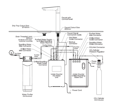Dozirnik vroče ohlajene peneče vode pod pultom